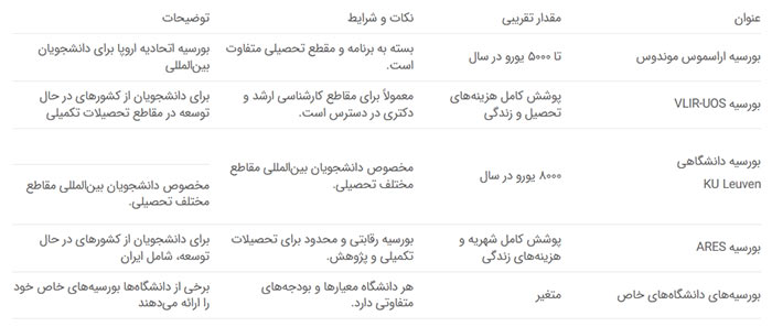 جدول هزینه‌ها و بورسیه‌های تحصیلی پزشکی در بلژیک برای دانشجویان بین‌المللی (از جمله ایرانیان):