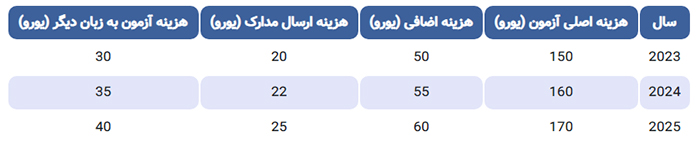 زبان آزمون: آزمون به زبان آلمانی برگزار می شود؛ بنابراین تسلط به زبان آلمانی ضروری است.