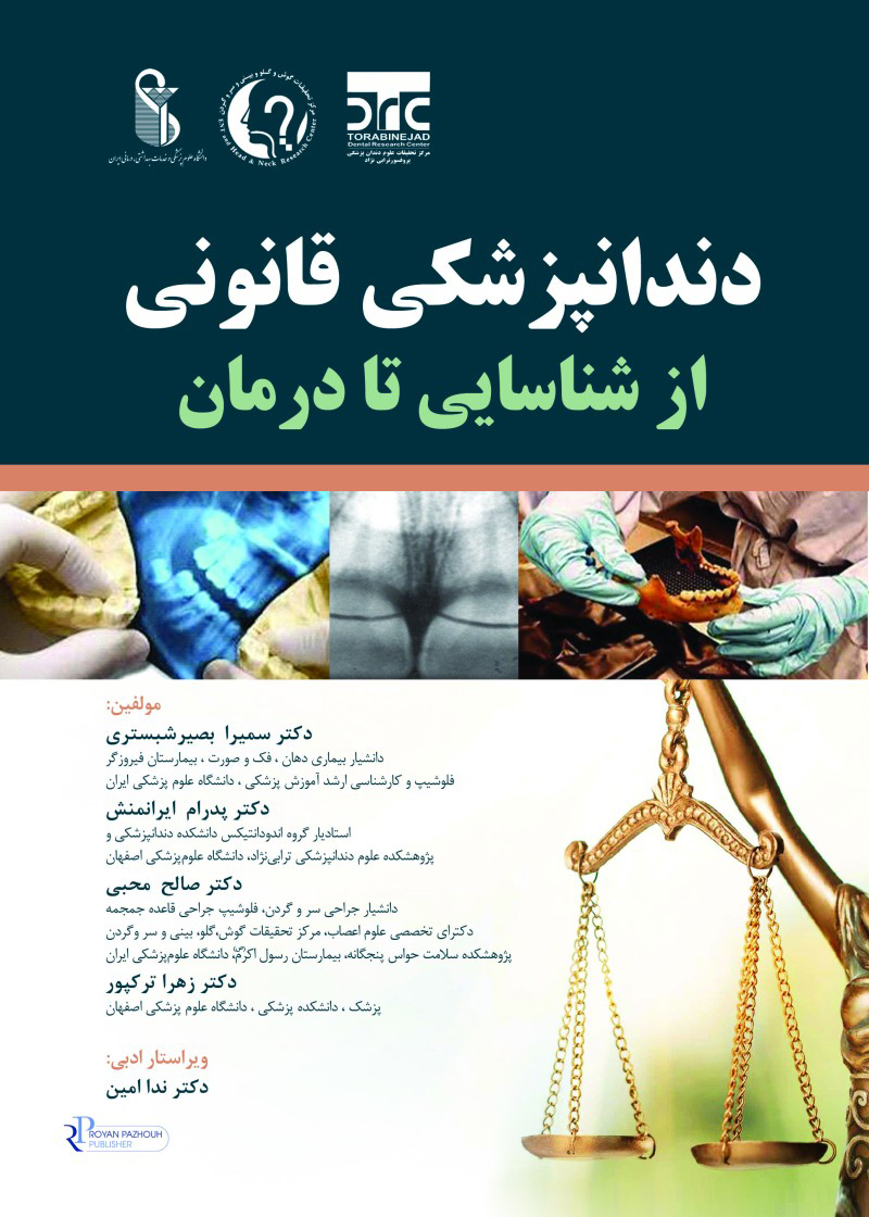 مرور تاریخچه دندان پزشکی قانونی، حاکی از این است که نقش ادنتولوژیست قانونی از یک عضو منفعل به عضوی ارزشمند و اصلی در تیمهای تحقیقاتی تغییر یافته است، زیرا ادنتولوژیست قانونی می تواند فعالیتهای گستردهای را از تعیین سن، جنس و نژاد افراد برحسب معیار های دندانی تا بررسی شکایات مربوط به خطا هایناشی از درمانهای دندانپزشکان و همچنین تعیین خسارت های حاصل از تصادفات، نزاع و ضرب و جرحها را انجام میدهد. با توجه به اینکه درحال حاضر کتابی که به صورت واحد و منسجم به بیان فرایند از تشخیص هویت تا درمان دندانپزشکی با دیدگاه پزشکی قانونی پرداخته باشد، نداریم بنابراین برآن شدیم که این نوشتار را در چهار بخش بدین شرح تدوین نماییم