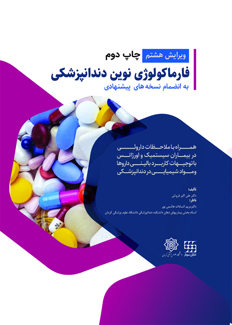 | عنوان کتاب | کتاب فارماکولوژی نوین دندانپزشکی (به انضمام نسخه های پیشنهادی) ویرایش هشتم علی اکبر فروتنی |
